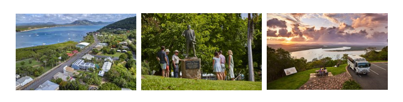 - Driver Guided tour of Cooktown township , Grassy Hill , Foreshore Walk, Heritage Listed Cemetery & James Cook Museum .